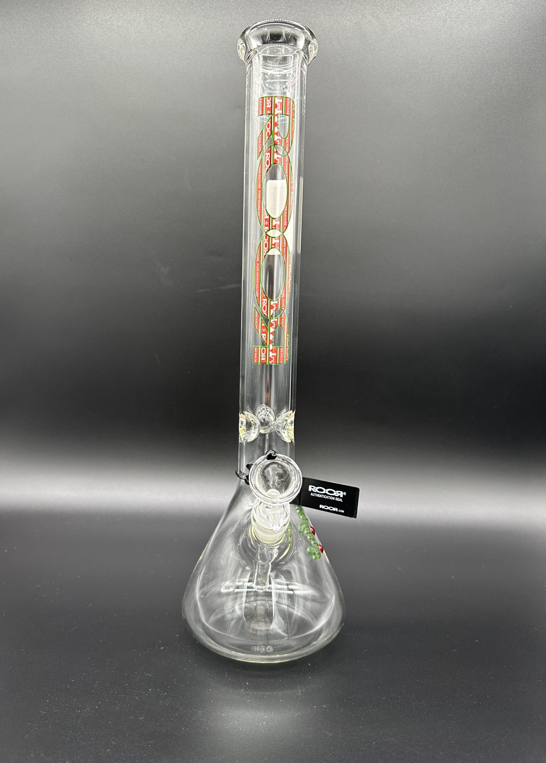 Water Pipe 18″ 50mm x 5mm Beaker ROOR Glass Limited Holiday Edition Ugly Sweater Label