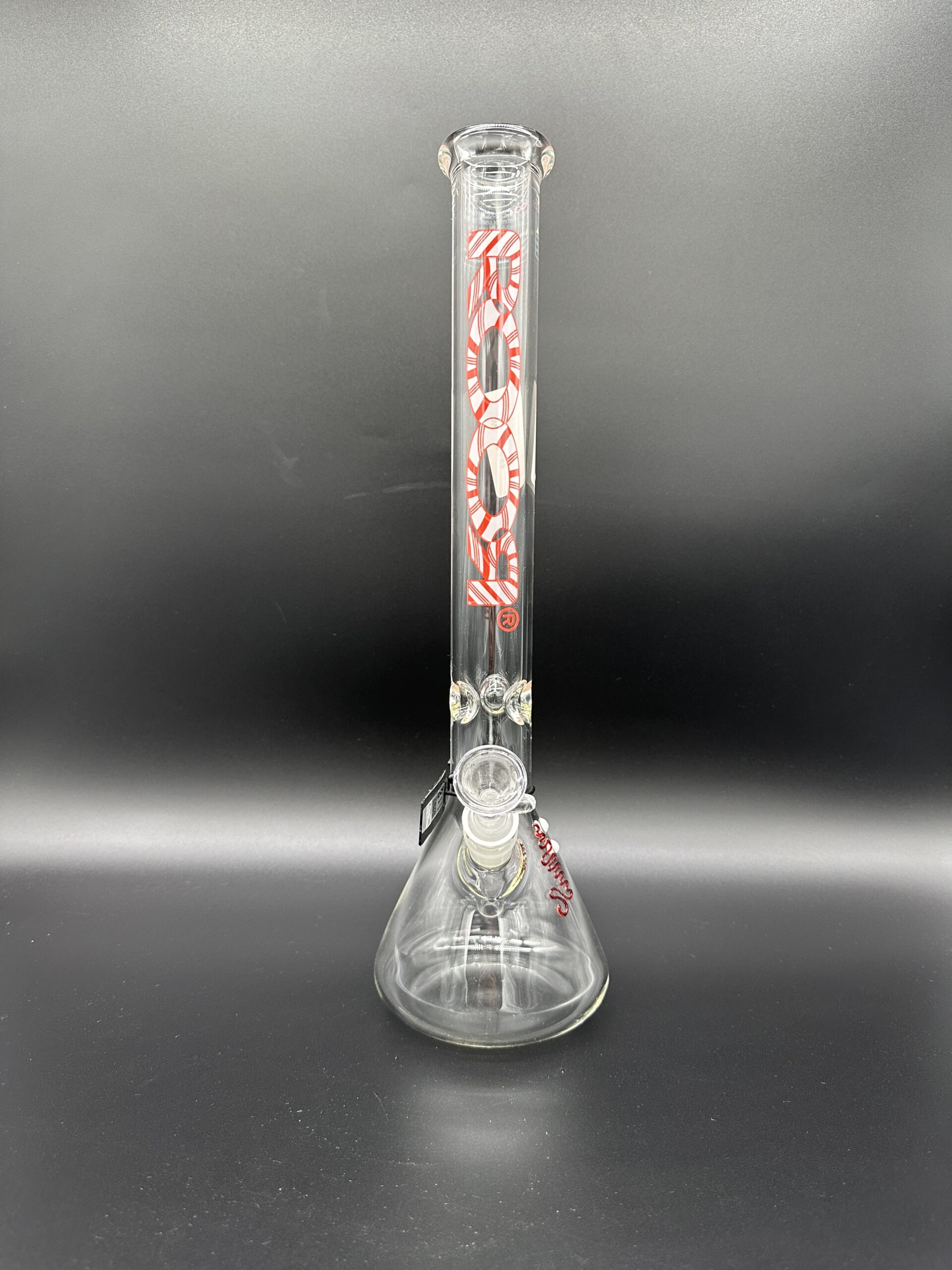 Water Pipe 18″ 50mm x 5mm Thick Beaker ROOR Glass Limited Holiday Edition Candy Cane Label