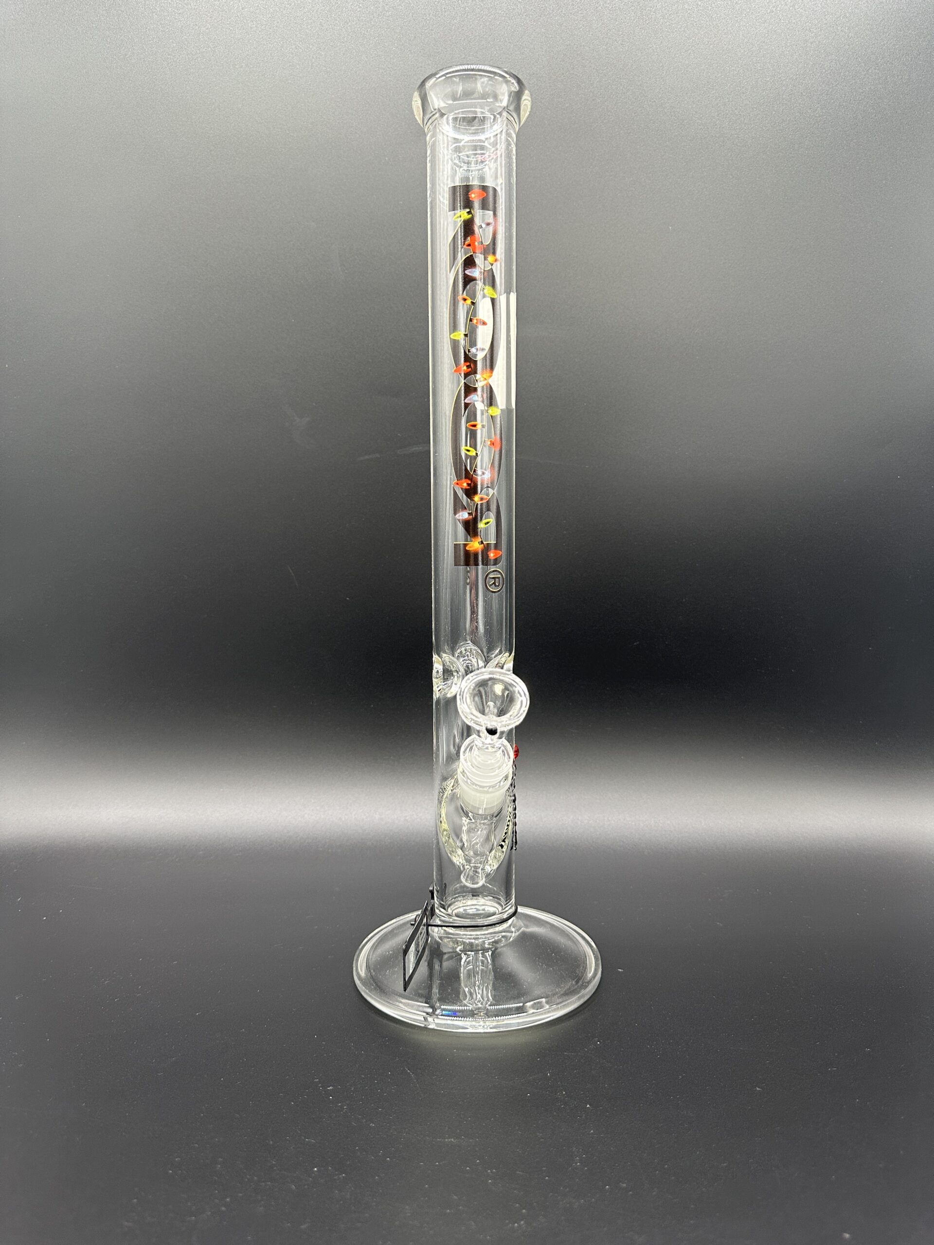 Water Pipe 18″ 50mm x 5mm Thick Straight Tube ROOR Glass Limited Holiday Edition Xmas Lights Label