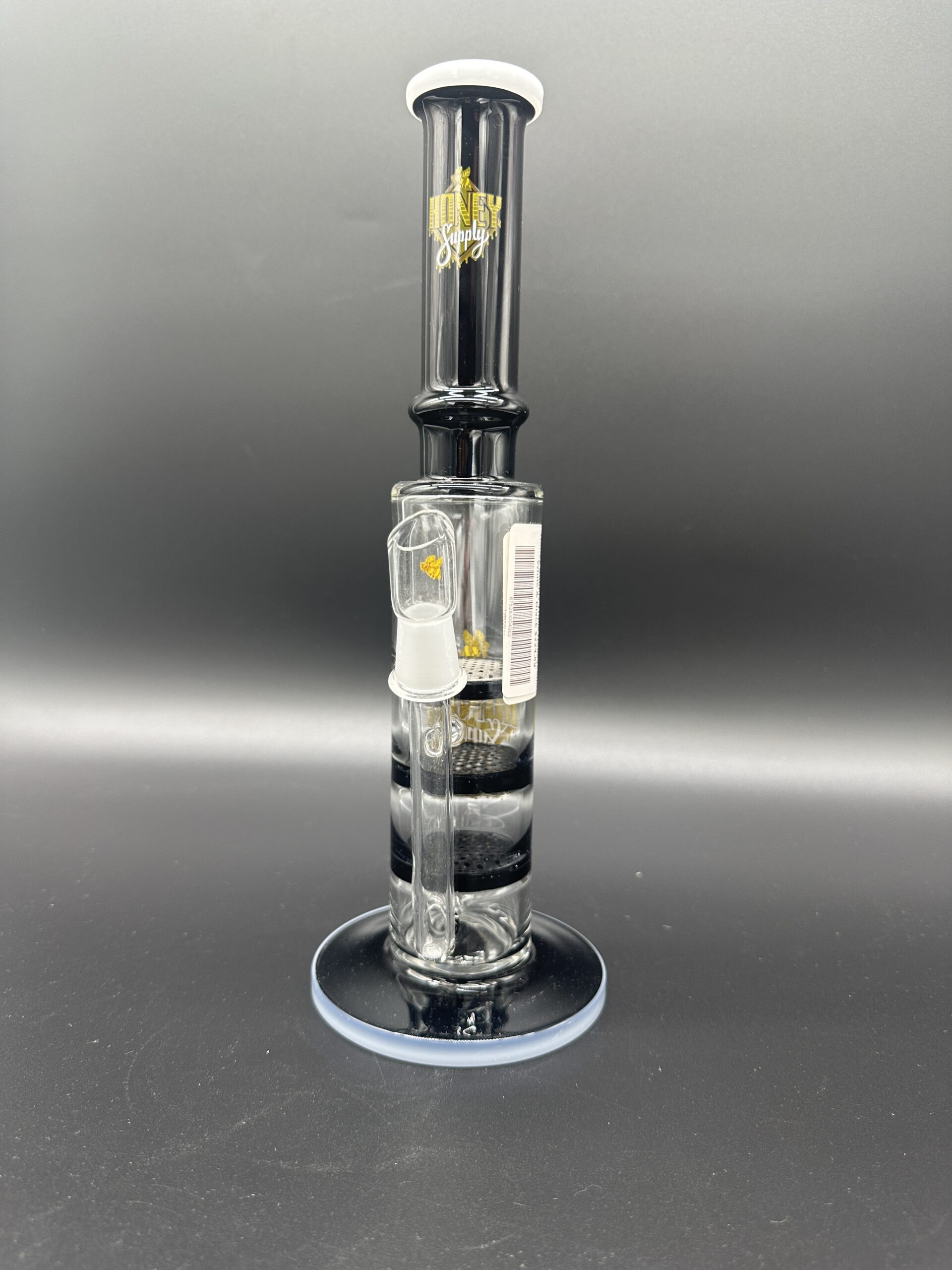 Water Pipe 11.5″ 5mm Thick Straight Stemless Honey Supply with Triple Honeycomb White & Black