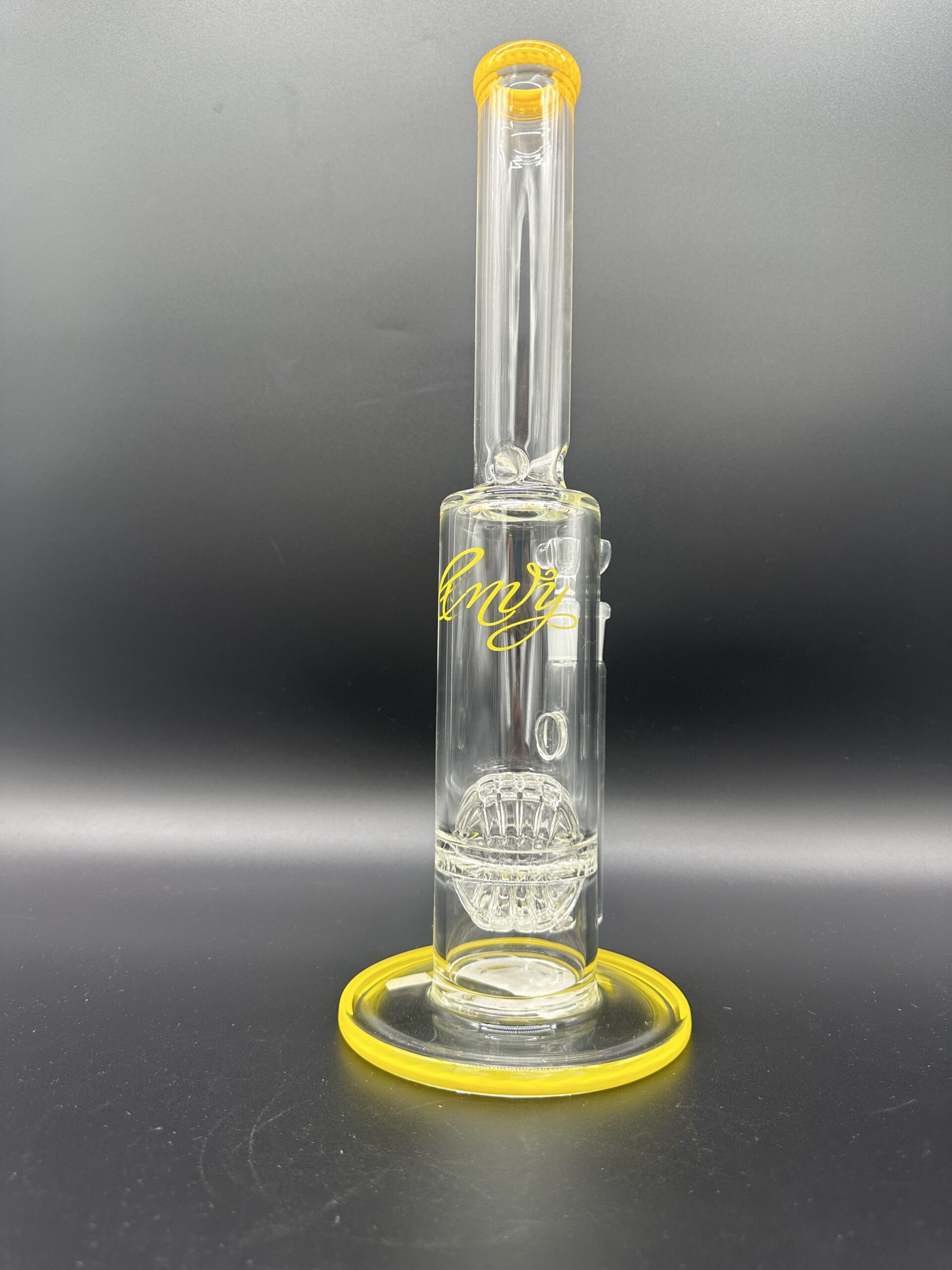 Water Pipe 15″ 7mm Thick Envey Glass Straigh Stemless Disco Ball Yellow